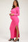 Hot Pink Ribbed Long Sleeve Side Slit Maternity Maxi Dress