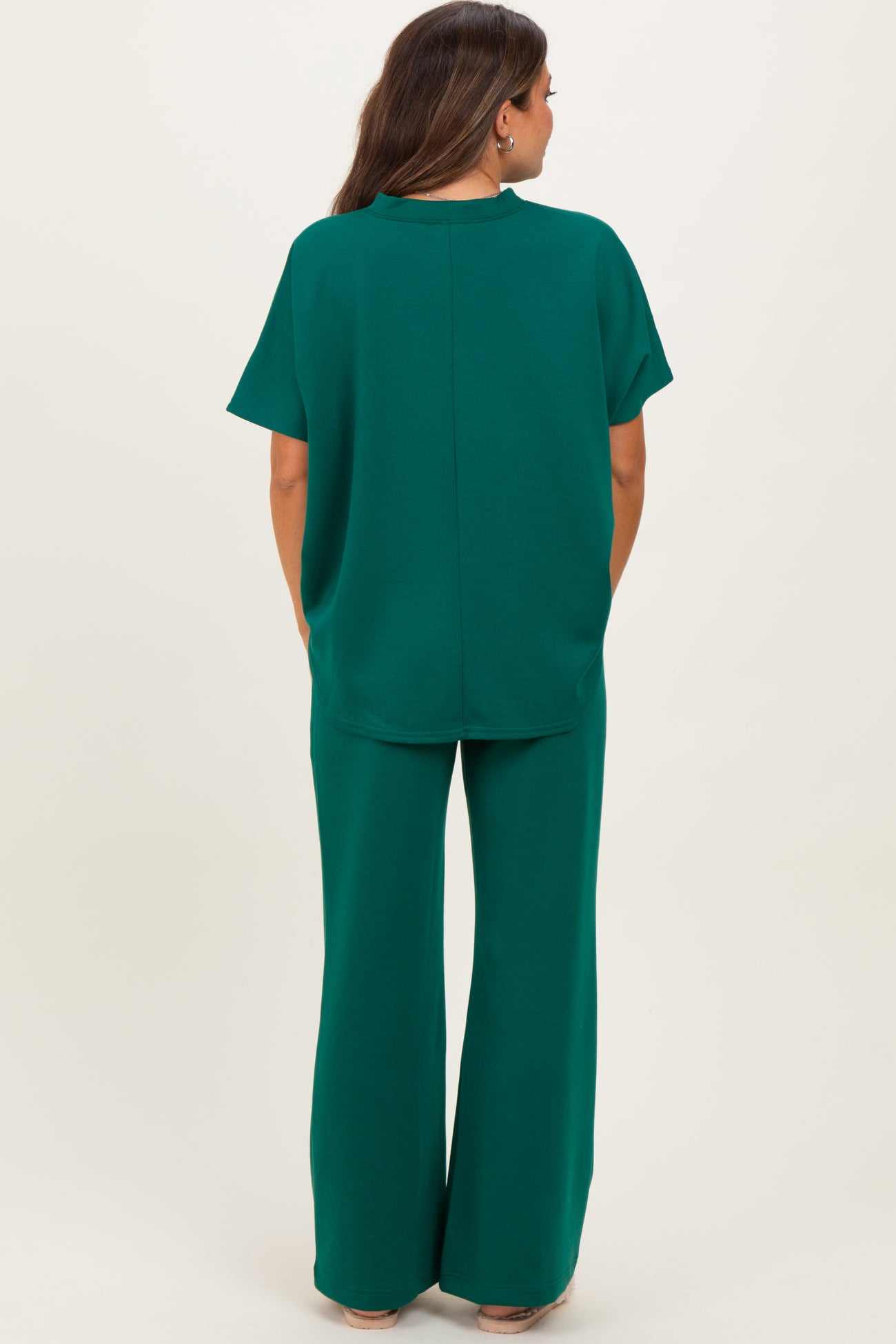 Hunter Green Curved Hem Tee Pants Maternity Lounge Set