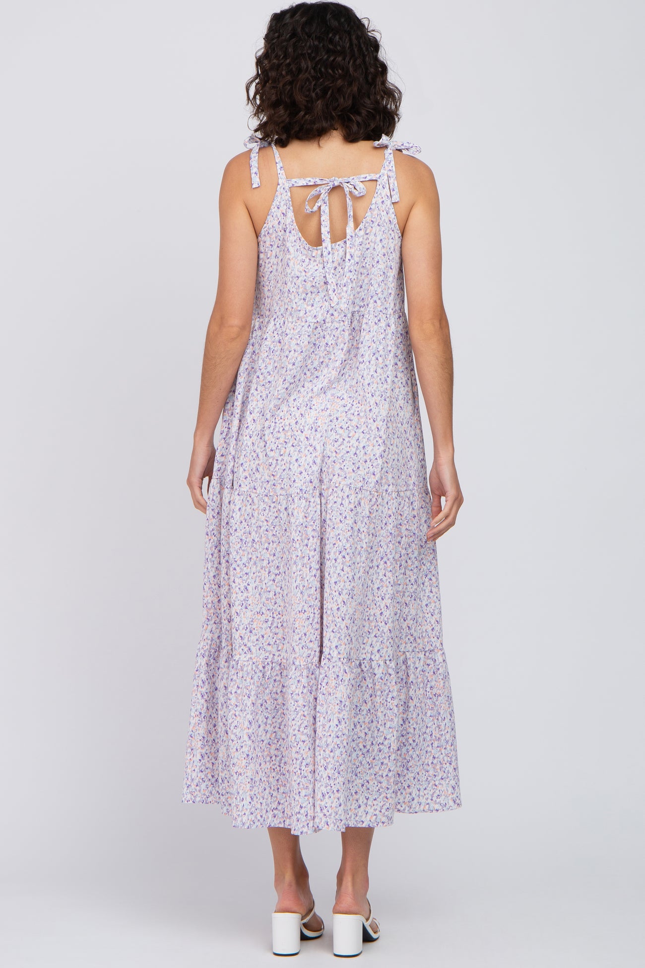 Details A printed maxi dress with a tiered body, adjustable tie straps and back tie detail. Pocketed. Content + Care