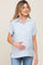 Light Blue Collared Button-Down Short Sleeve Maternity Blouse