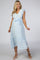 Light Blue Embroidered Waist Tie Ruffle Maternity Midi Dress
