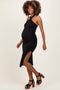 Floral sleeveless maternity maxi dress that features adjustable straps, and a v-neckline with front knot twist.