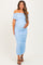 Light Blue Ruched Mesh Foldover Off Shoulder Maternity Maxi Dress