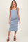 Light Blue Striped Knit Square Neck Maternity Midi Dress
