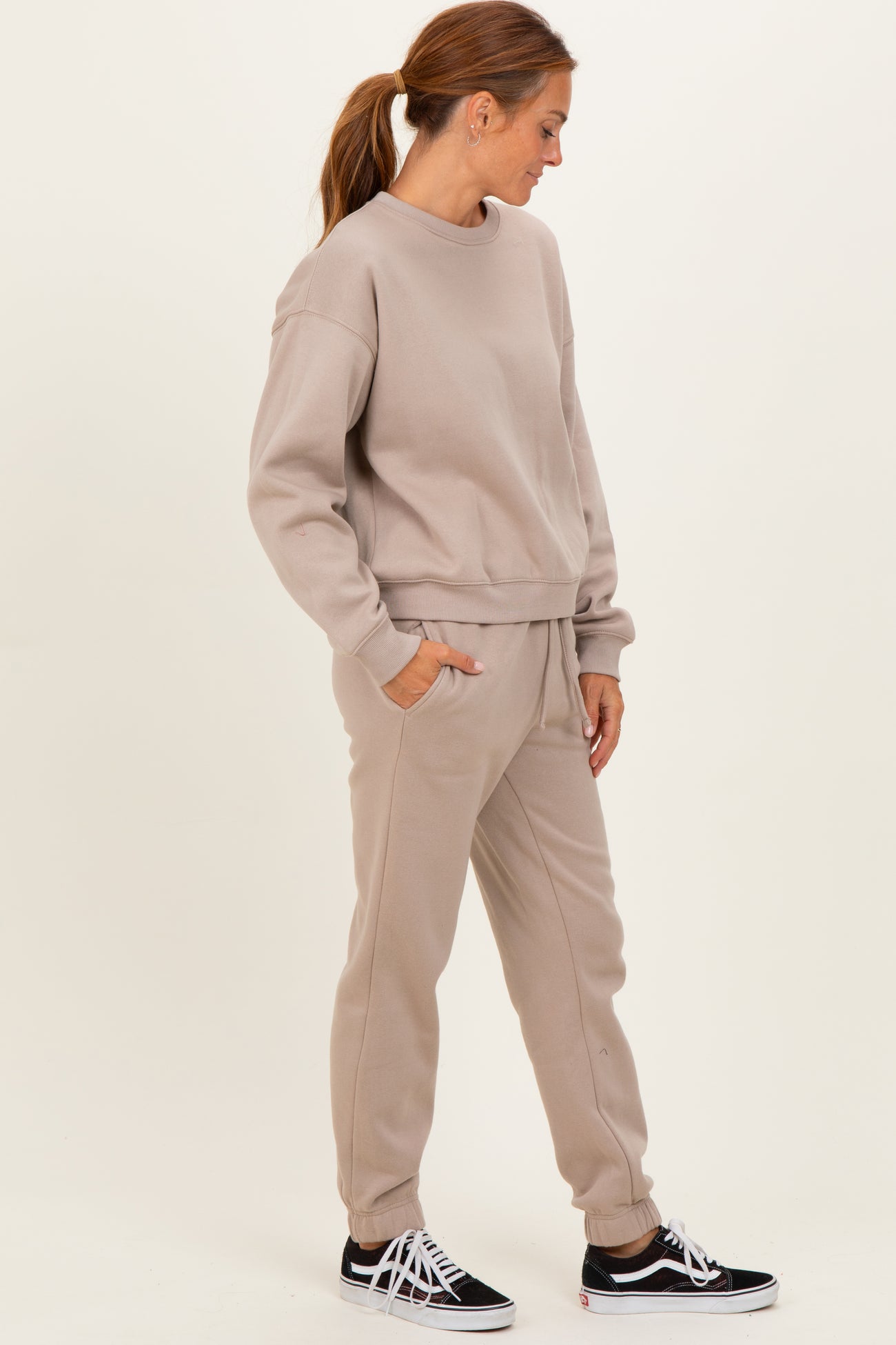 Light Mocha Fleece Long Sleeve Pullover & Jogger Set