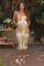 Light Olive Abstract Print Lace Up Back Ruched Maternity Midi Dress