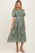 Light Olive Floral Lace Smocked Maternity Midi Dress