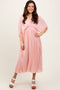 Light Olive Satin Pleated V-Neck Maxi Dress