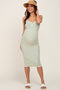 A maternity midi dress featuring a square neckline, a smocked bodice, a tulle ruffle tiered A-line skirt and double lining.