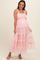 Light Pink Smocked Ruffle Tiered Tulle Maternity Midi Dress