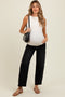 Light Taupe Mock Neck Fitted Ribbed Knit Maternity Midi Dress