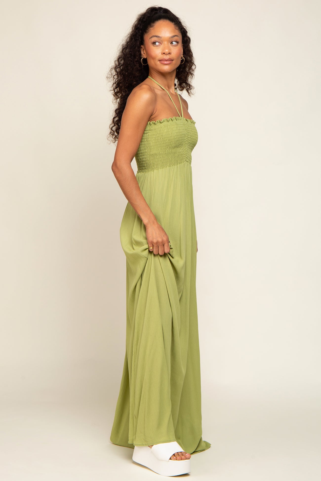 Lime Smocked Halter Maxi Dress