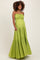 Lime Smocked Halter Tiered Maternity Maxi Dress