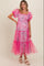 Magenta Floral Lined Smocked Tulle Maternity Midi Dress