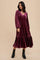 Magenta V-Neck Ruffle Hem Velvet Midi Dress