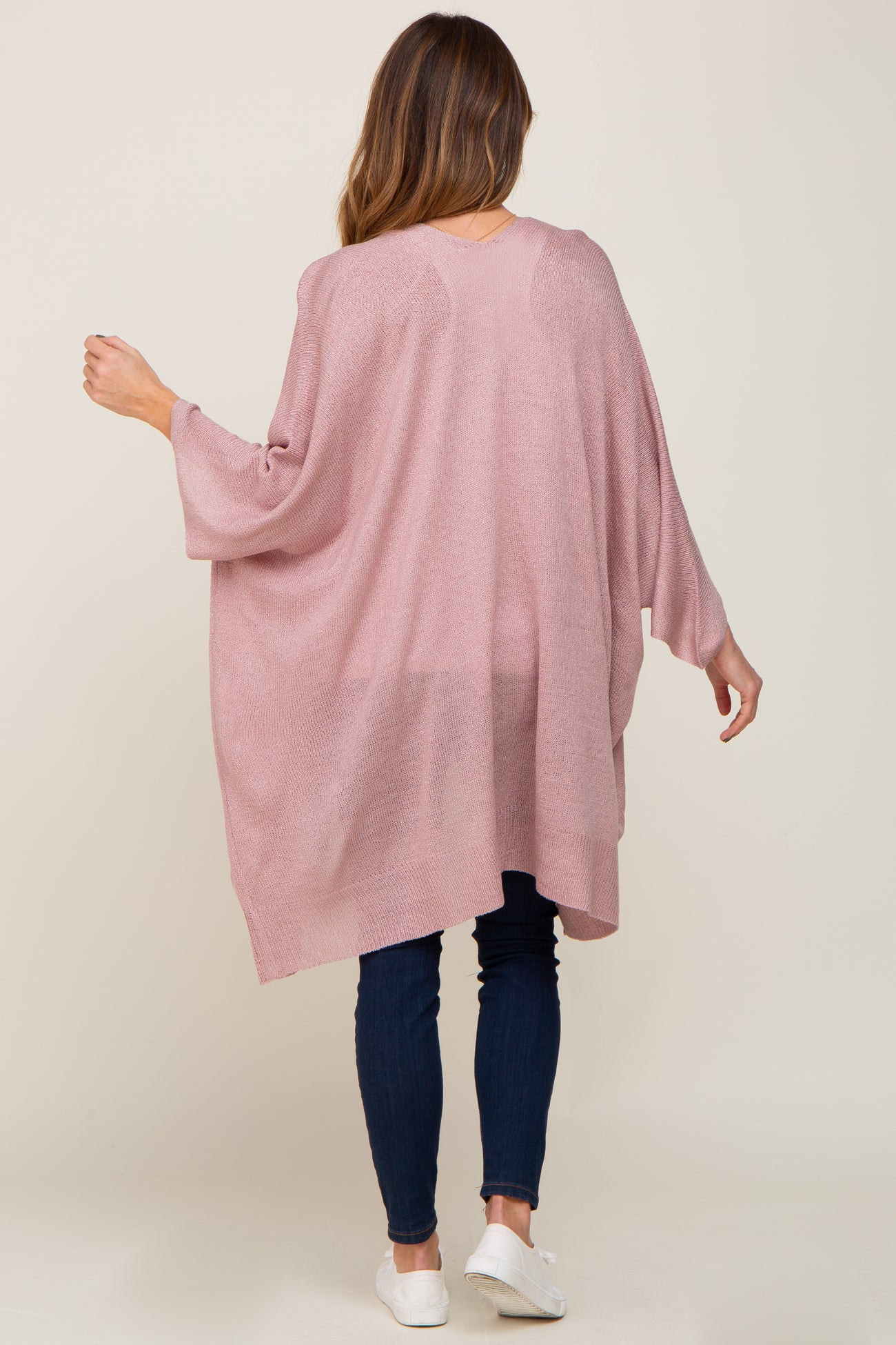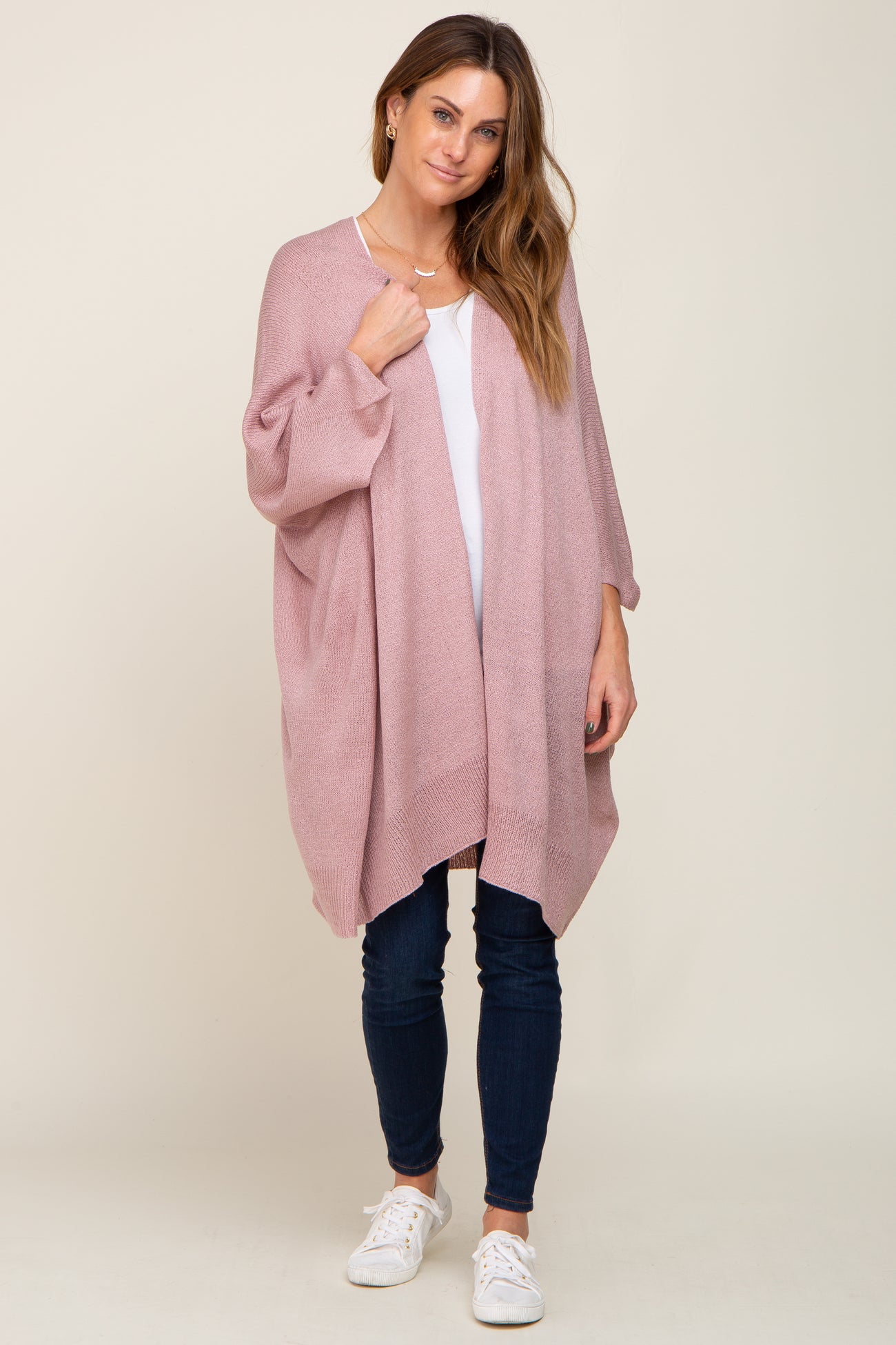 A solid hued knit cardigan featuring an open front and wide sleeves.