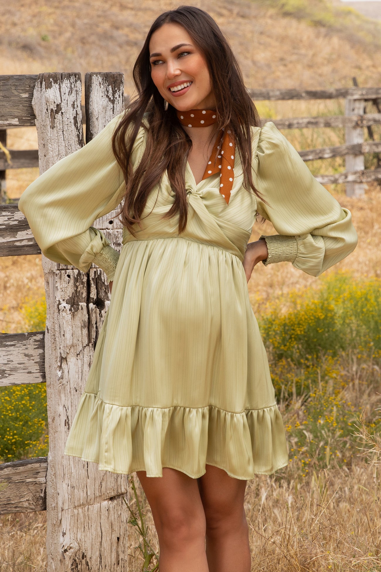 Mint Green Striped Satin Twist Front Maternity Dress