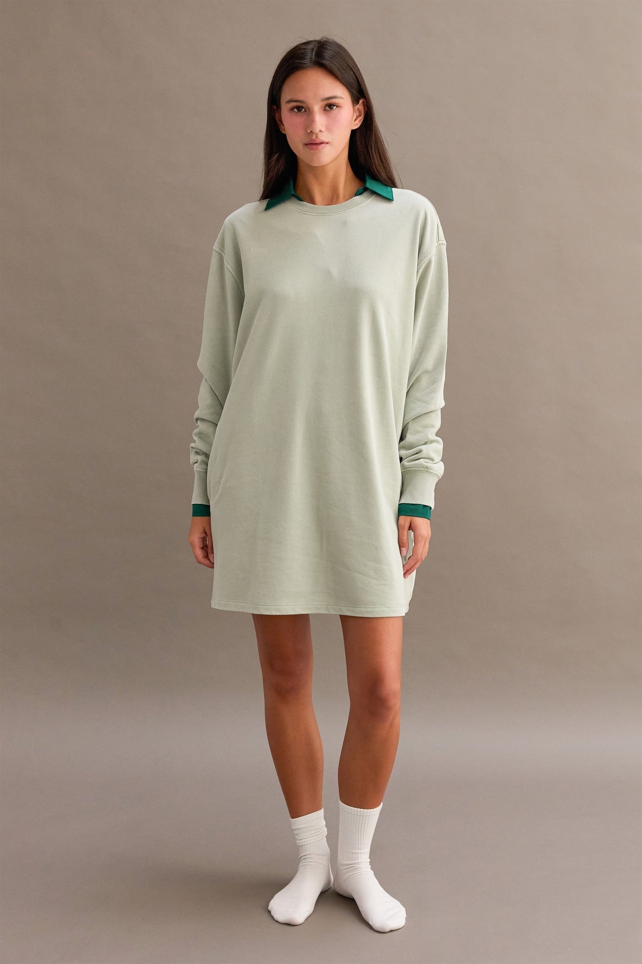 Mint Mineral Wash Oversized Sweatshirt Mini Dress
