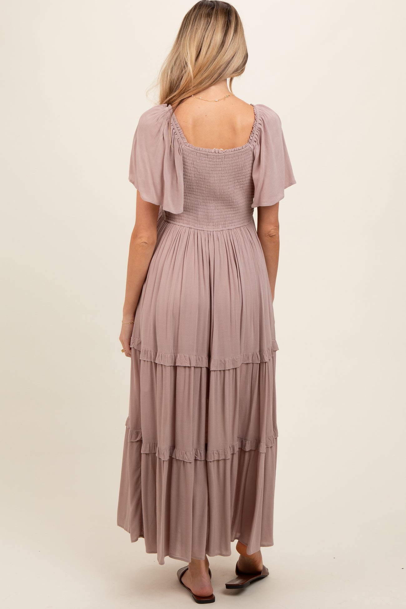 Mocha Crochet Lace Tiered Ruffle Maternity Maxi Dress