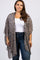 Details A leopard print plus cover up featuring 3/4 sleeves, side slits, and an open front. Content + Care