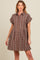 Mocha Plaid Rolled Cuff Sleeve Button Down Maternity Dress