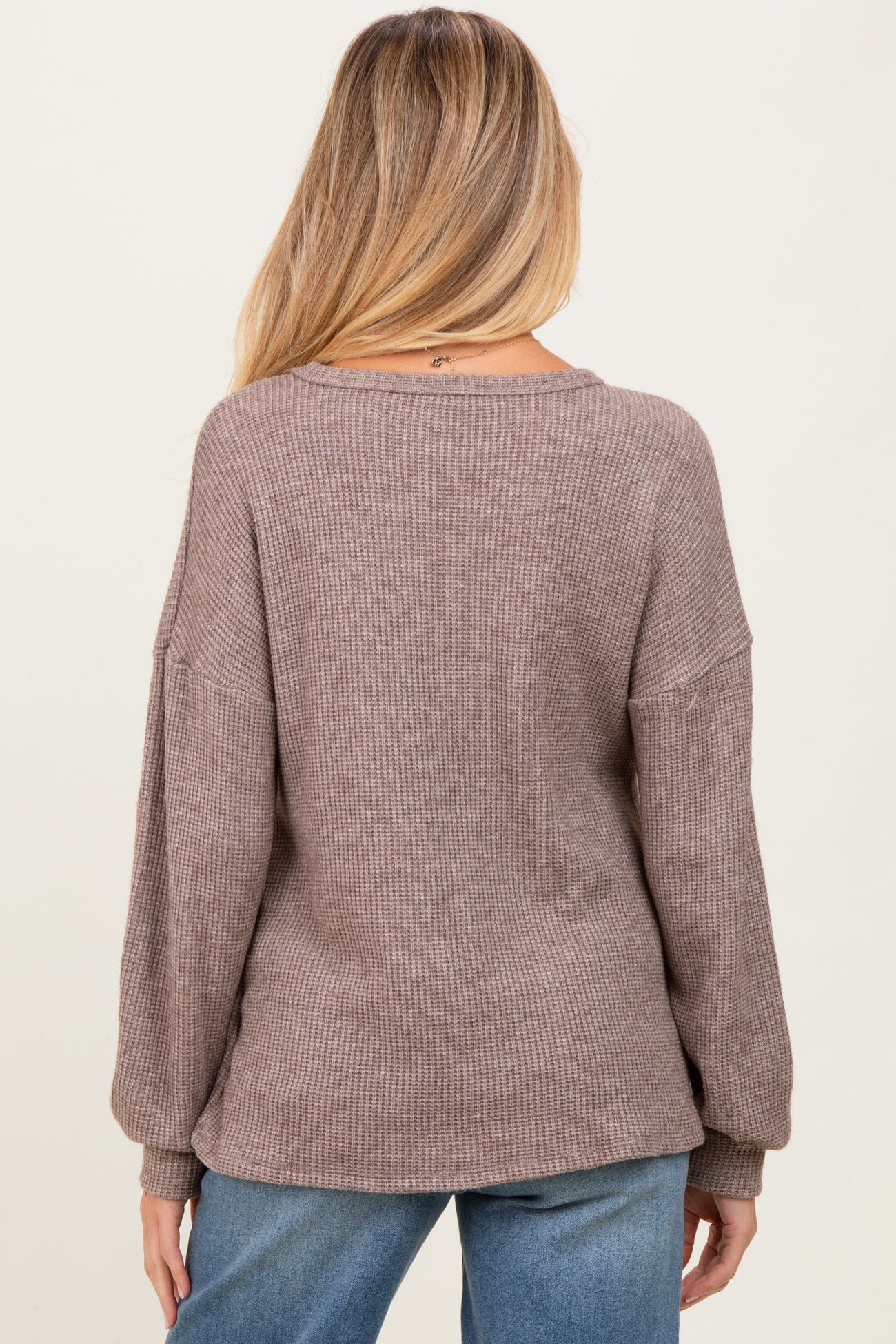 Mocha Puff Sleeve Solid Maternity Sweater Top