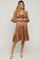 Mocha Satin Smocked Ruffle Hem Maternity Dress