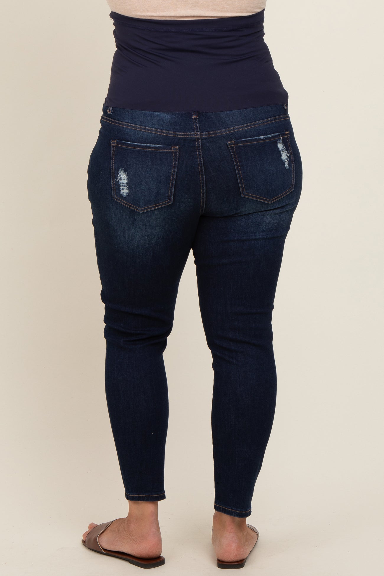 Navy Blue Distressed Crop Skinny Maternity Plus Jeans