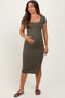 Navy Blue Leaf Print Mesh Smocked Maternity Midi Dress