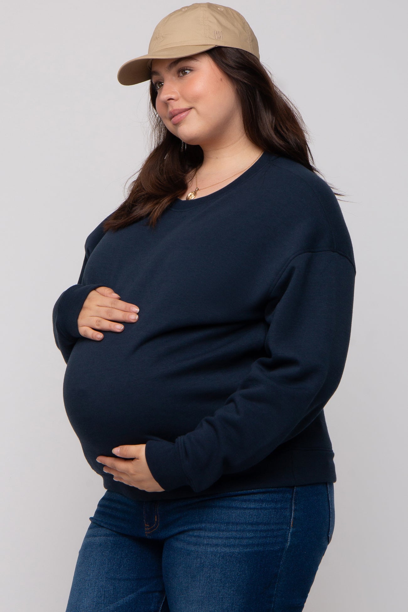 Navy Blue Soft Knit Fleece Lined Maternity Plus Sweatshirt