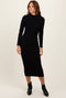 Navy Blue Solid Tiered French Terry Maternity Maxi Dress