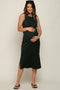 Navy Blue Square Ruffle Neck Smocked Midi Dress