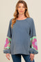 Navy Pointelle Knit Striped Maternity Top