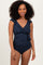 Navy Rib Ruffle V Neck Side Tie Knot Swimsuit
