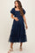 Navy Smocked Tiered Tulle Maternity Midi Dress