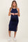 Navy/Soft White High Neck Ribbed Sleeveless Maternity Midi Dress