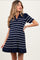 Navy Striped Knit Collared Pleated Maternity Dress