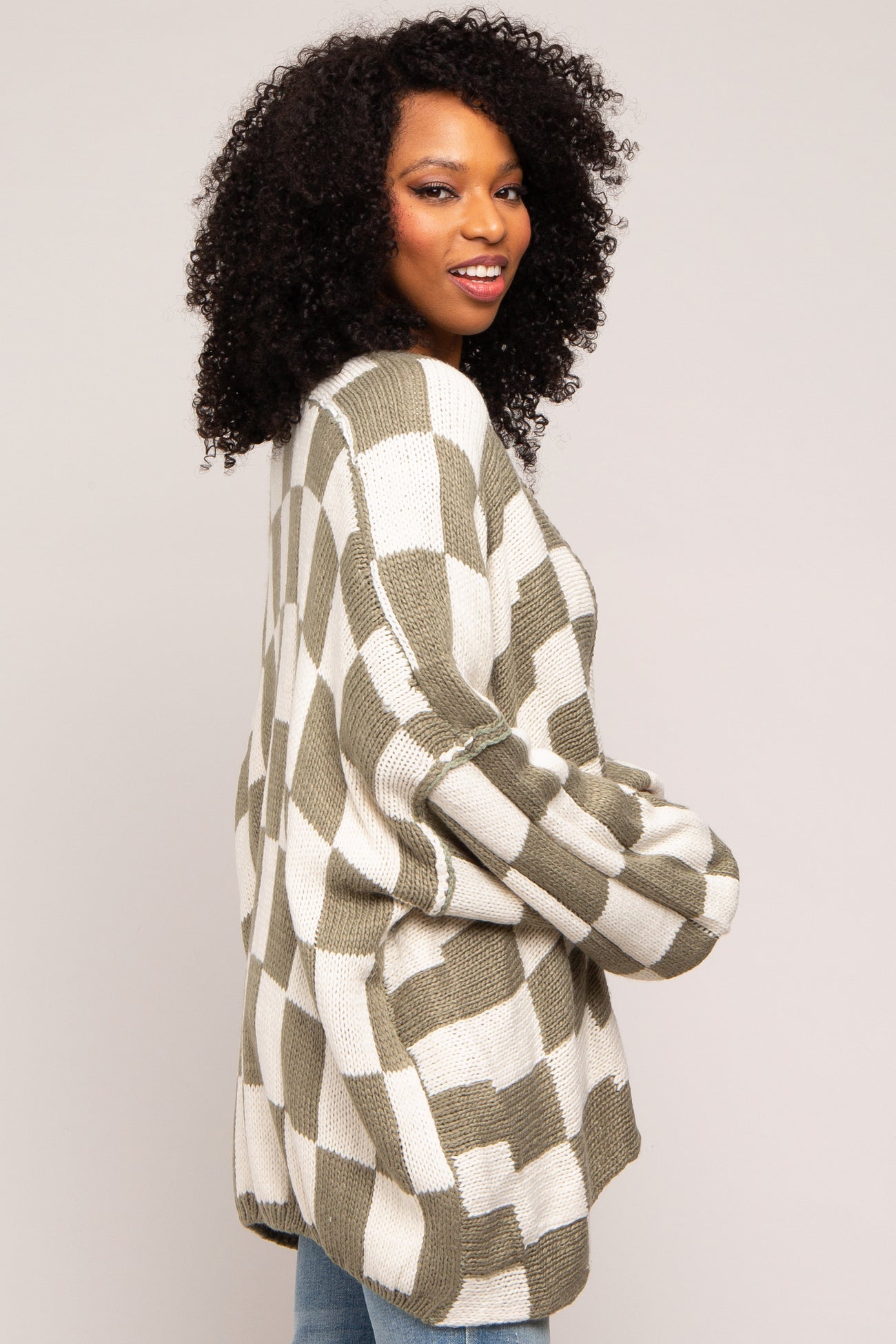 Olive Checkered Print Oversized Cardigan
