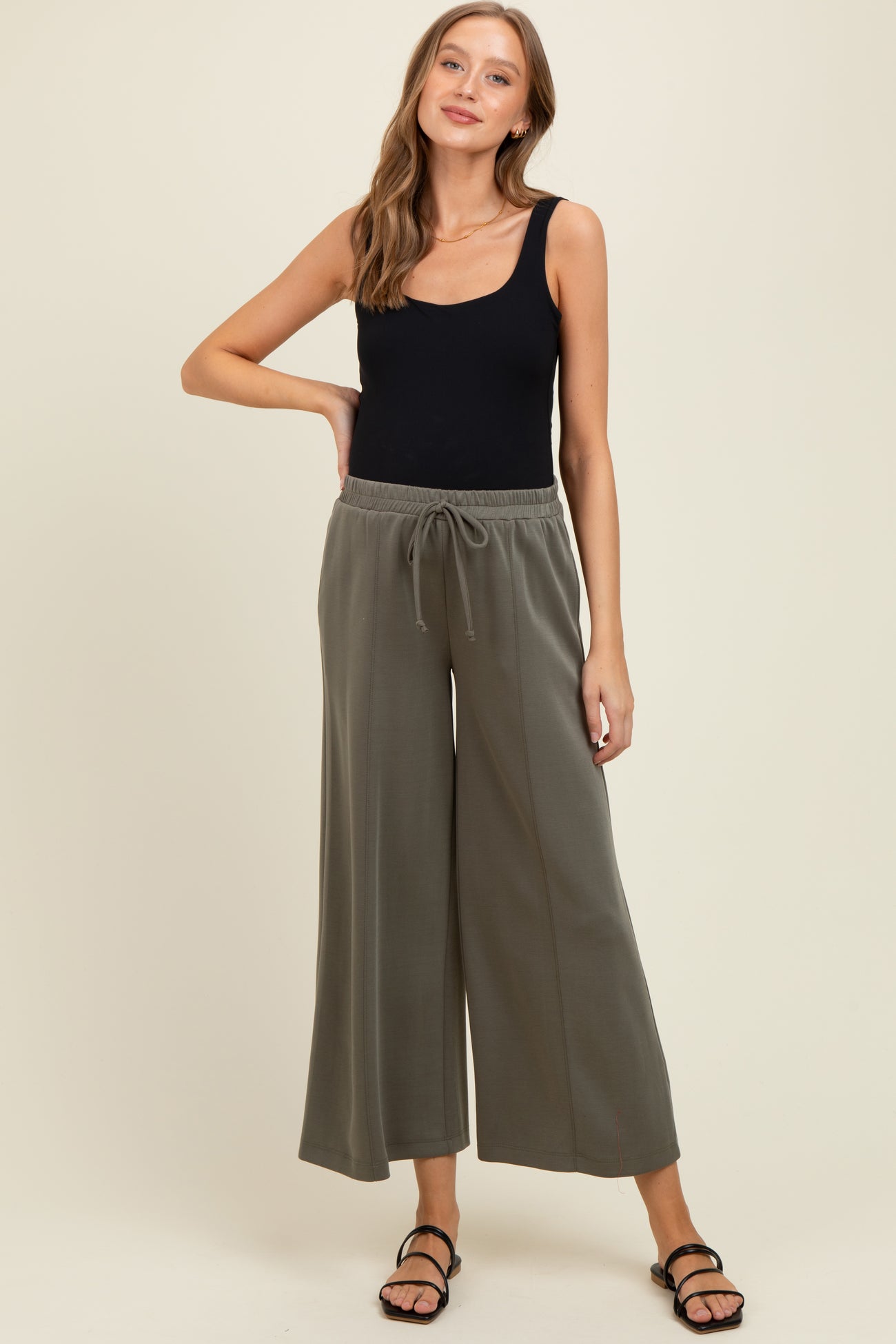 Olive Drawstring Wide Leg Maternity Pants
