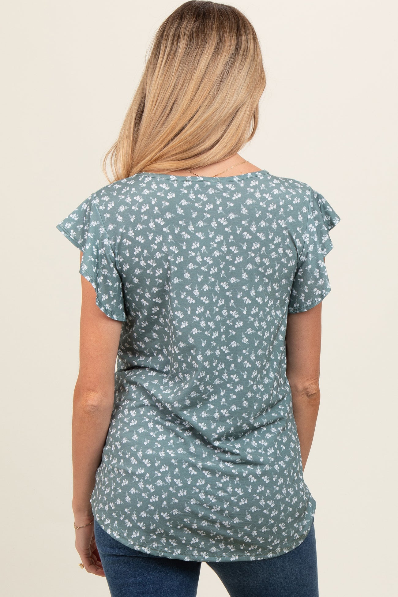 Olive Floral Ruffle Sleeve Maternity Top