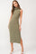 Olive Fuzzy Knit Sleeveless Turtle Neck Midi Dress