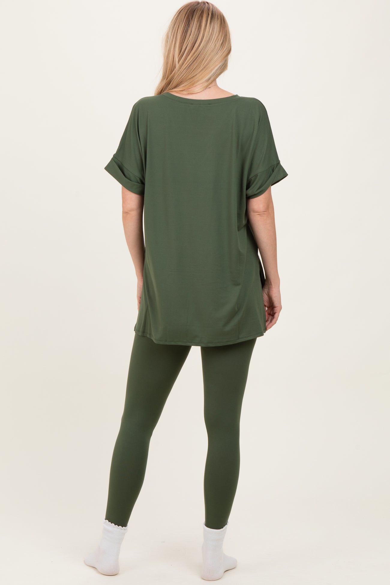Olive Oversized V-Neck Tee Legging Lounge Set