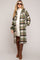 Details A long plaid maternity coat featuring front buttons, front pockets, side pockets, long sleeves, side slits and a collared neckline. Content + Care