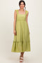 Olive Ribbed Long Sleeve Side Slit Maxi Dress
