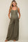 Olive Smocked Button Accent Linen Maternity Jumpsuit