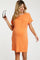 Orange Ribbed Front Pocket Dolman Short Sleeve Maternity Dress