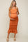 Orange Satin Smocked Fitted Maternity Midi Dress
