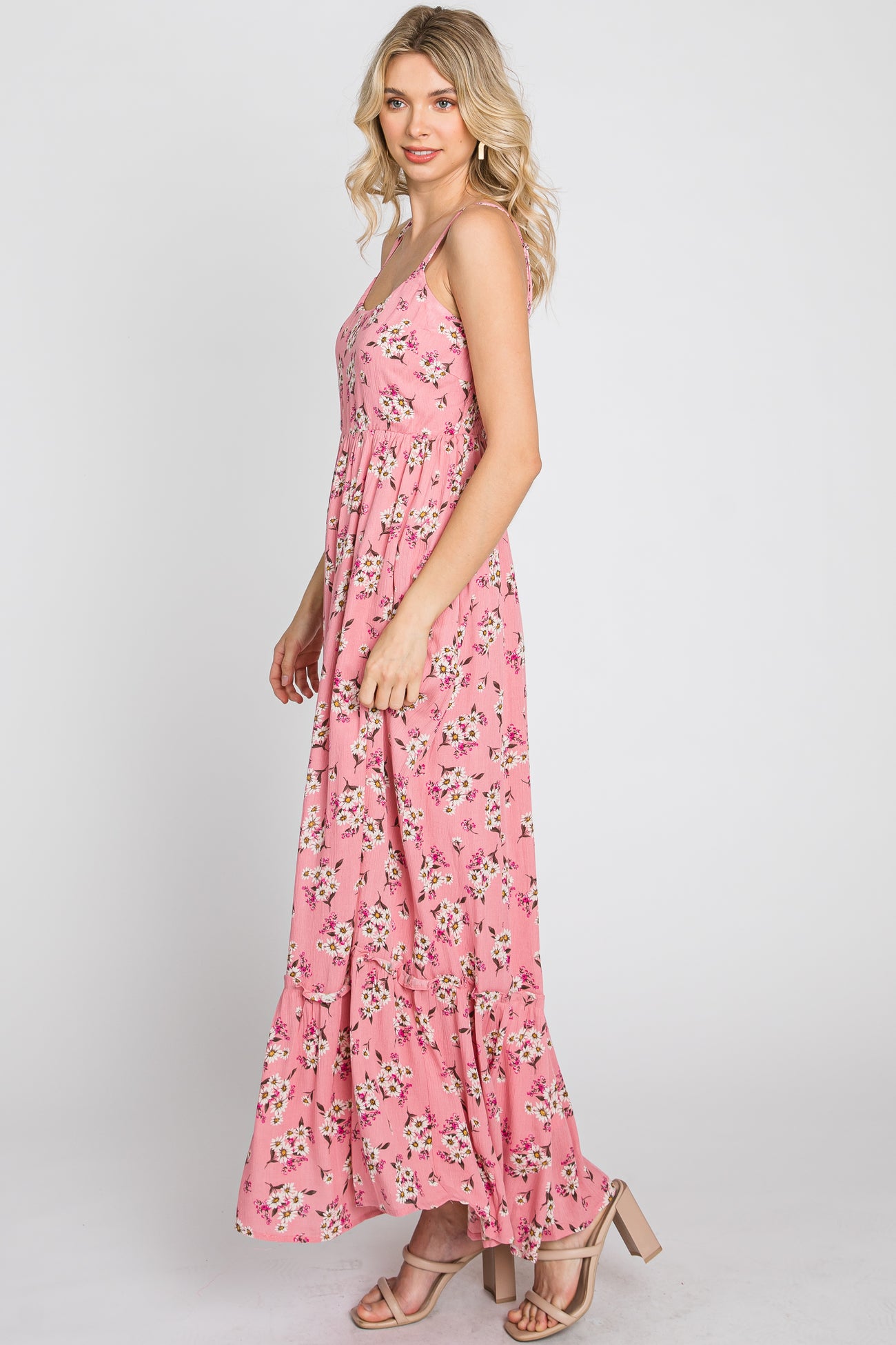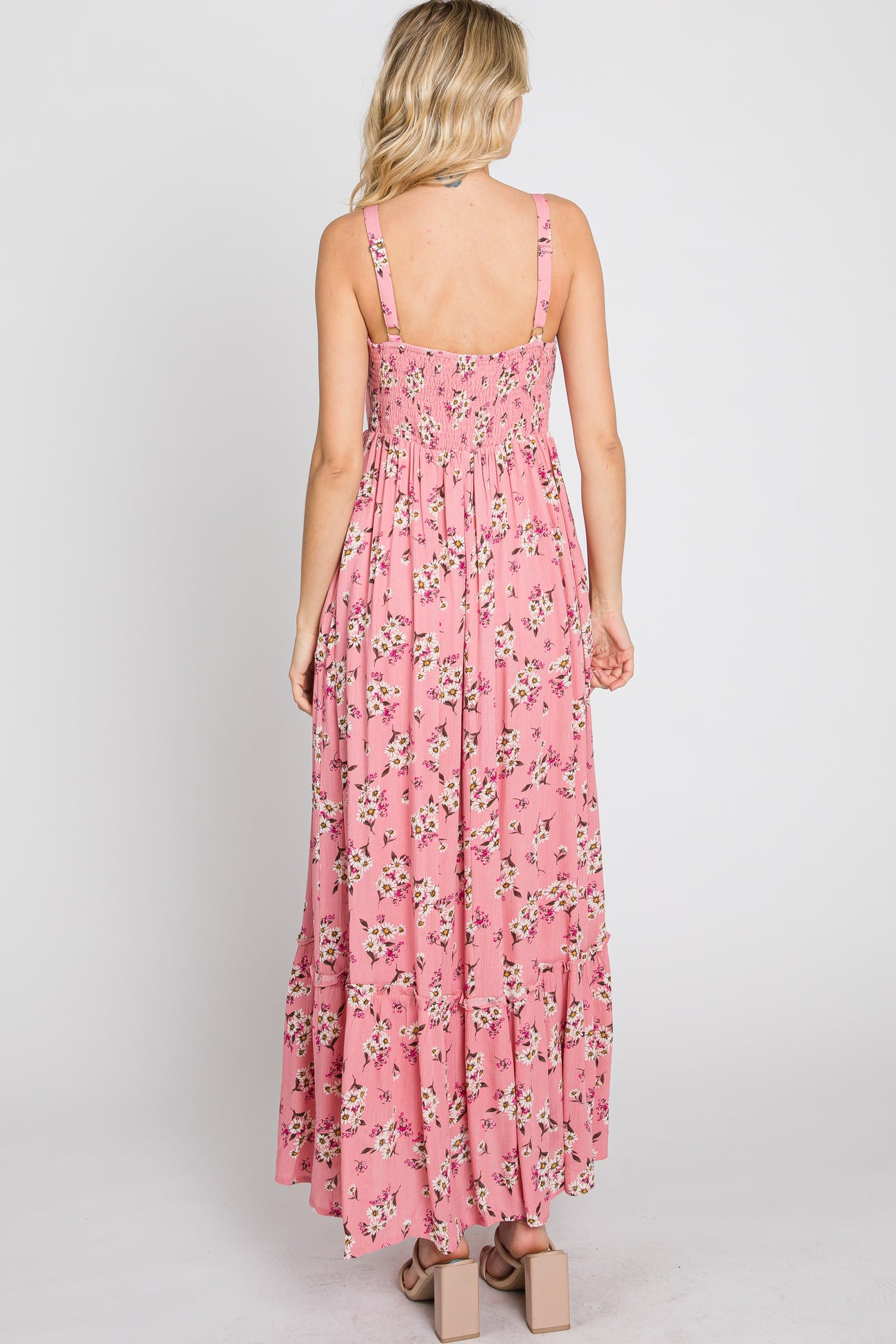 Details A floral print maxi dress with adjustable straps, smocked back, hidden side pockets and ruffle accent hem. Dress is lined. Content + Care