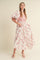 Pink Floral Smocked Puff Sleeve Midi Dress