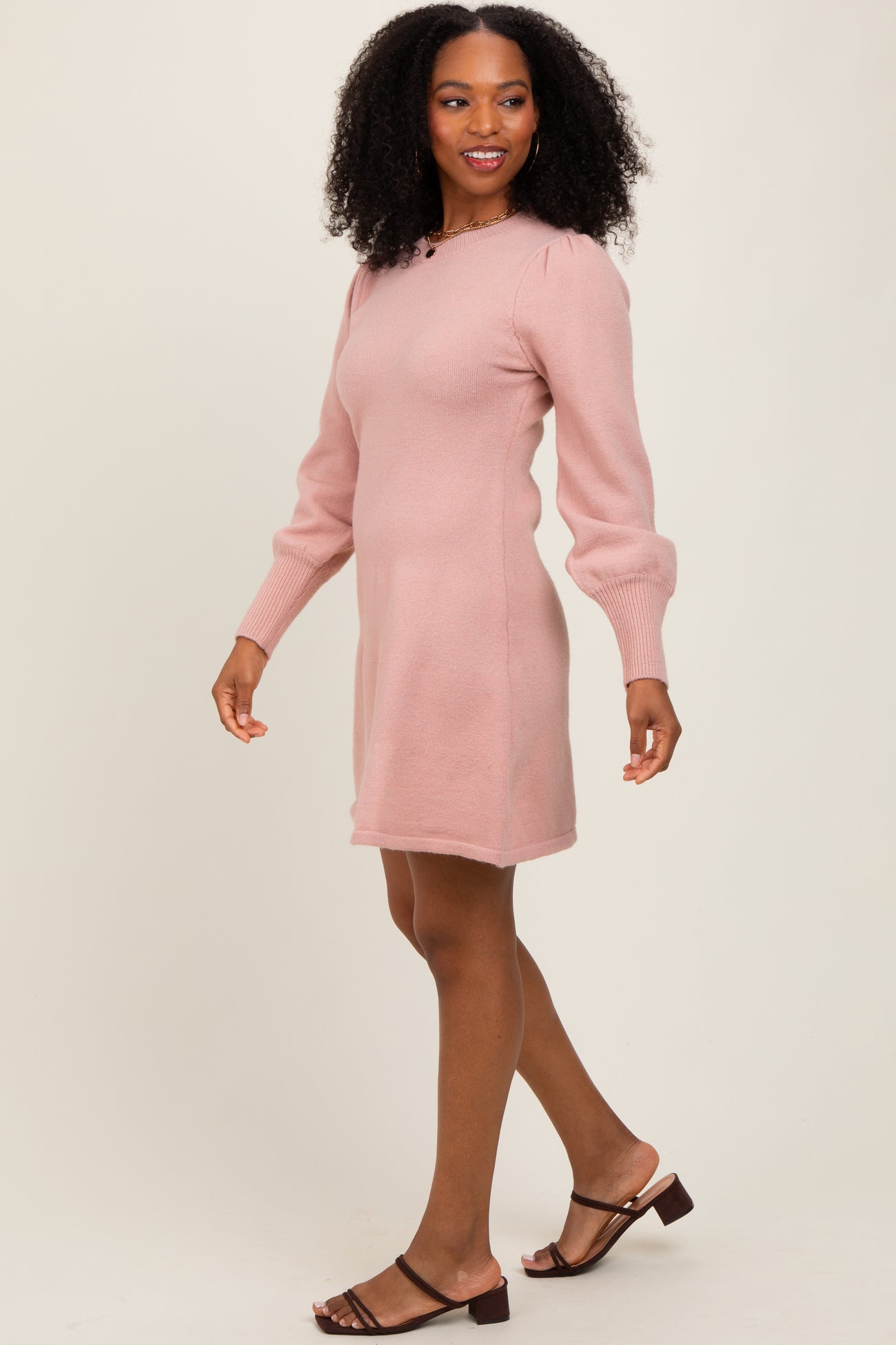 Pink Knit Bubble Sleeve Mini Dress